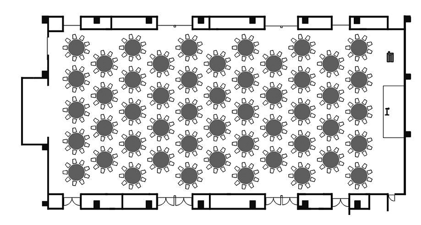 | m² | 坪 | 寸法(m) | 正餐 | ブッフェ | スクール | シアター | ||