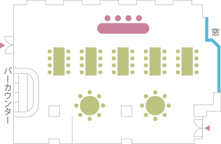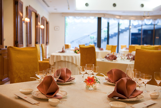 陽光溢れる専用のらせん階段から、ドラマチックな入場シーンを演出します。 床一面に竹材を敷き詰めた清涼感漂う空間は、大きな窓から差し込む陽光の温かい雰囲気。 店内には、自然の温もりが感じられるアンティークな調度品が配置され、 誰もが心地よく寛げる穏やかな空気が包み込みます。