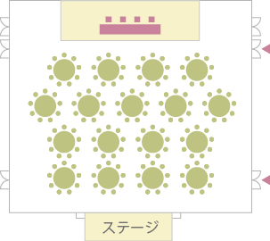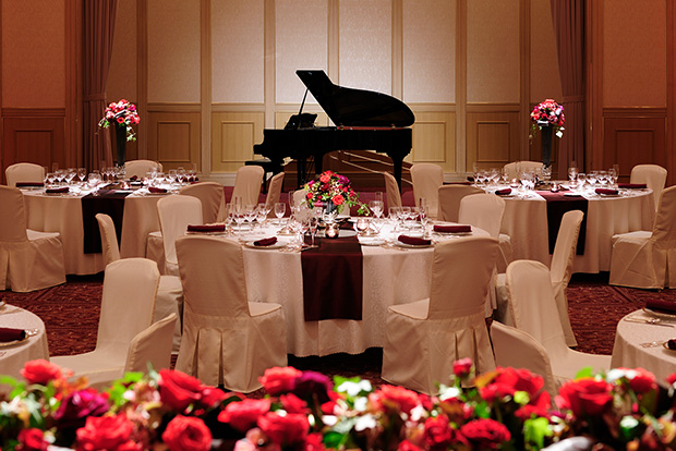 天井高6.6メートルの広々とした空間と、照明・音響などの最高の設備を備えた明治記念館のメインバンケットです。 この富士の間は、世界からおいでになる国賓、ロイヤルファミリー、VIPのレセプションにご利用いただくことも多く、 国内でも指折の格式と華麗な雰囲気には定評をいただいています。 広い空間を使った自由度の高い演出が可能な会場です。