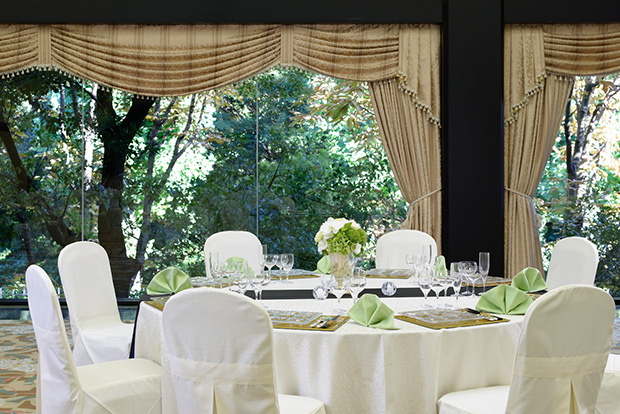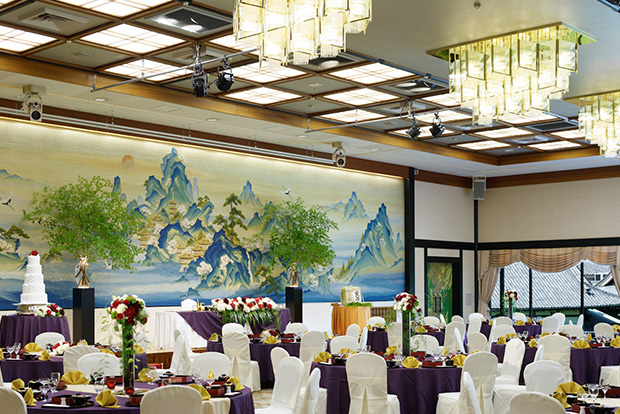 庭園を臨むことができるこの会場は、自然をモチーフとし「森」や「山」をイメージしました。