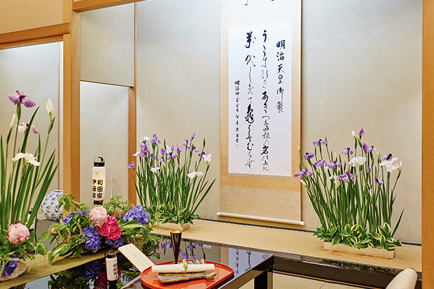 懐石料亭「花がすみ」内にあるこちらのお部屋は、 調度品の一つにも穏やかさのなかに古格をたたえる印象深いものとなっており、 晴れの席を格調高く演出致します。 開放的な窓が印象的で、掘りごたつから箱庭を眺めると、誰もが心地よく和やかに過ごせるでしょう。 厳かさと同時に、どこかゆとりも感じさせてくれるお部屋です。