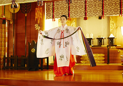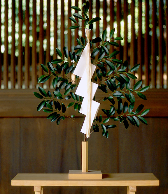 日本の神話には、伊邪那岐(いざなぎ)と伊邪那美(いざなみ)のお二人の神様が、天上の神々から示された「この未完成な国を立派なものにしなさい」とのお言葉によって、地上の「おのころ島」に降りられた時、そこに宮殿を建て、聖なる柱を廻り巡って結婚の儀が執り行われ、日本の山海川草木をお生みになったと伝えられています。