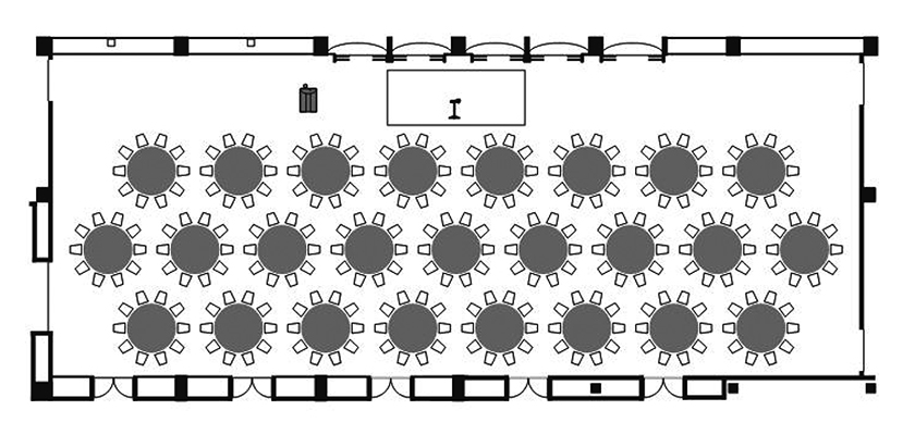 | m² | 坪 | 寸法(m) | 正餐 | ブッフェ | スクール | シアター | ||