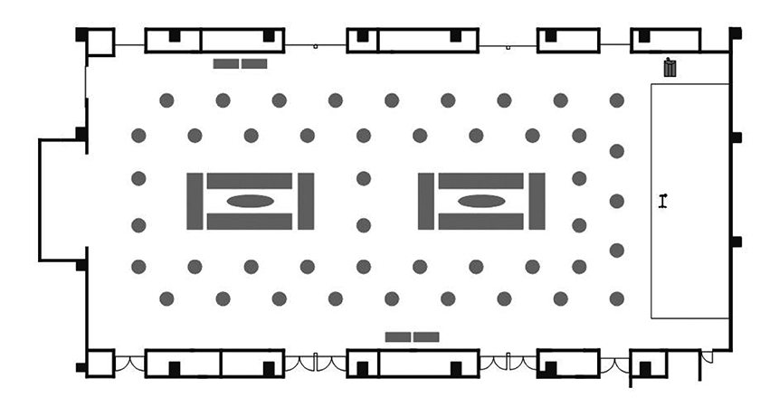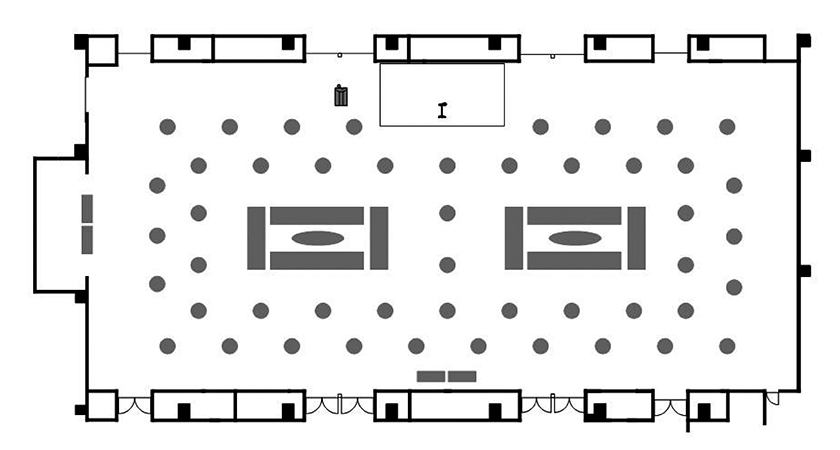 | 室名 | フロア | 面積 | 収客人員 | |||||