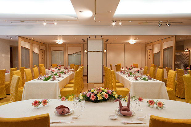 陽光溢れる専用のらせん階段から、ドラマチックな入場シーンを演出します。 床一面に竹材を敷き詰めた清涼感漂う空間は、大きな窓から差し込む陽光の温かい雰囲気。 店内には、自然の温もりが感じられるアンティークな調度品が配置され、 誰もが心地よく寛げる穏やかな空気が包み込みます。