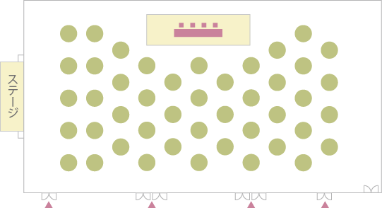 天井高6.6メートルの広々とした空間と、 照明・音響などの最高の設備を備えた明治記念館のメインバンケットです。 広い空間を使った自由度の高い演出が可能な会場です。