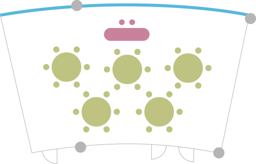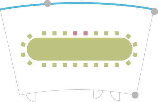 少人数で落ち着いた雰囲気の披露宴にはお勧めの会場です。 オーバルテーブルでご家族でのアットホームな会食スタイルから、 丸テーブルでの披露宴スタイルまで自由にアレンジが可能です。