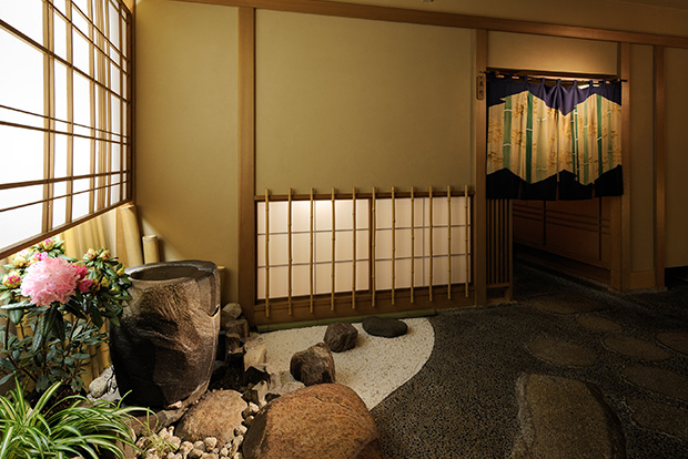 懐石料亭「花がすみ」内にあるこちらのお部屋は、 調度品の一つにも穏やかさのなかに古格をたたえる印象深いものとなっており、 晴れの席を格調高く演出致します。 開放的な窓が印象的で、掘りごたつから箱庭を眺めると、誰もが心地よく和やかに過ごせるでしょう。 厳かさと同時に、どこかゆとりも感じさせてくれるお部屋です。